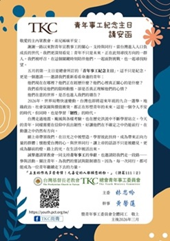 2025年青年高峰會【韌性青年】 「青年高峰會」是總會、各中會/族群區會新舊任青年幹部一起聚集,相互交流分享與代禱,展現信仰與生活共同體的園地。建立青年宣教的合一心志,推動青年整全宣教事工,凝聚異象,規劃並預備明年度事工。