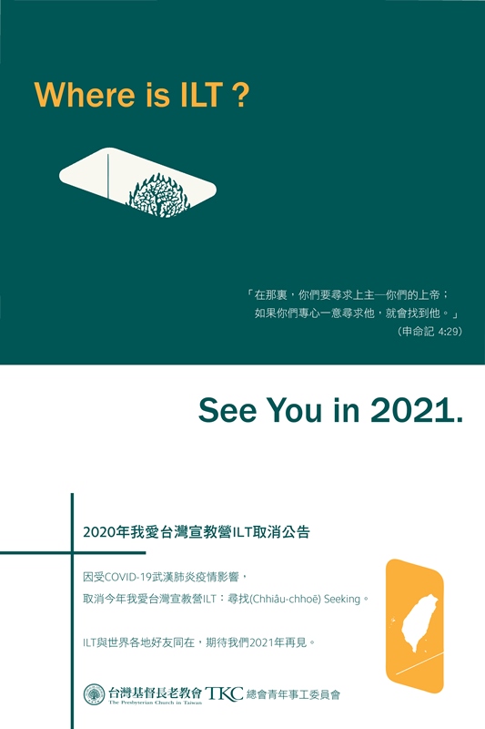 因受COVID-19武漢肺炎疫情影響,取消今年我愛台灣宣教營ILT:尋找(Chhiâu-chhoē) Seeking。